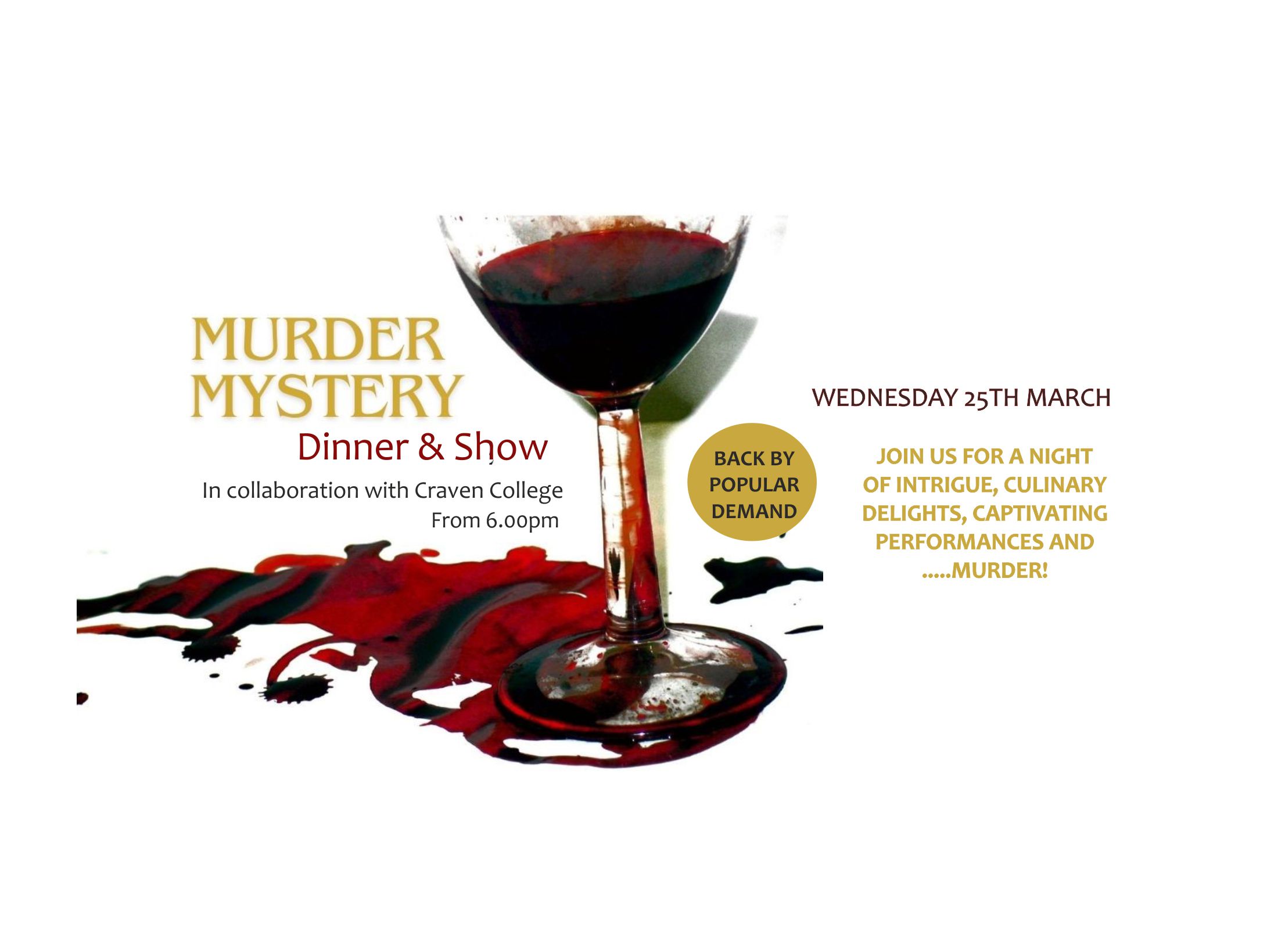 Get ready for an unforgettable evening at Herriots Hotel, where culinary delights meet captivating performances, and a chilling murder mystery awaits!